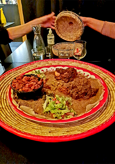 Bienvenue chez Lalibela, le restaurant éthiopien niché au cœur du quartier du Neudorf à Strasbourg, à deux pas de l’arrêt de tram Schluthfeld. Fondé par Kamela, cette adresse a ouvert ses portes en début d'année 2020, juste 14 jours avant le premier confinement. Originaire de la ville éthiopienne de Lalibela, Kamela a réalisé son rêve en créant ce lieu authentique et chaleureux, empreint des couleurs et des parfums de son pays natal.